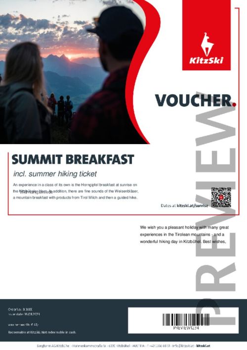 An experience in a class of its own is the Horngipfel breakfast at sunrise on the Kitzbüheler Horn. In addition, there are fine sounds of the Weisenbläser, a mountain breakfast with products from Tirol Milch and then a guided hike.